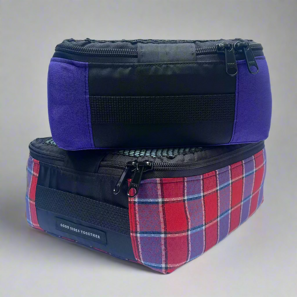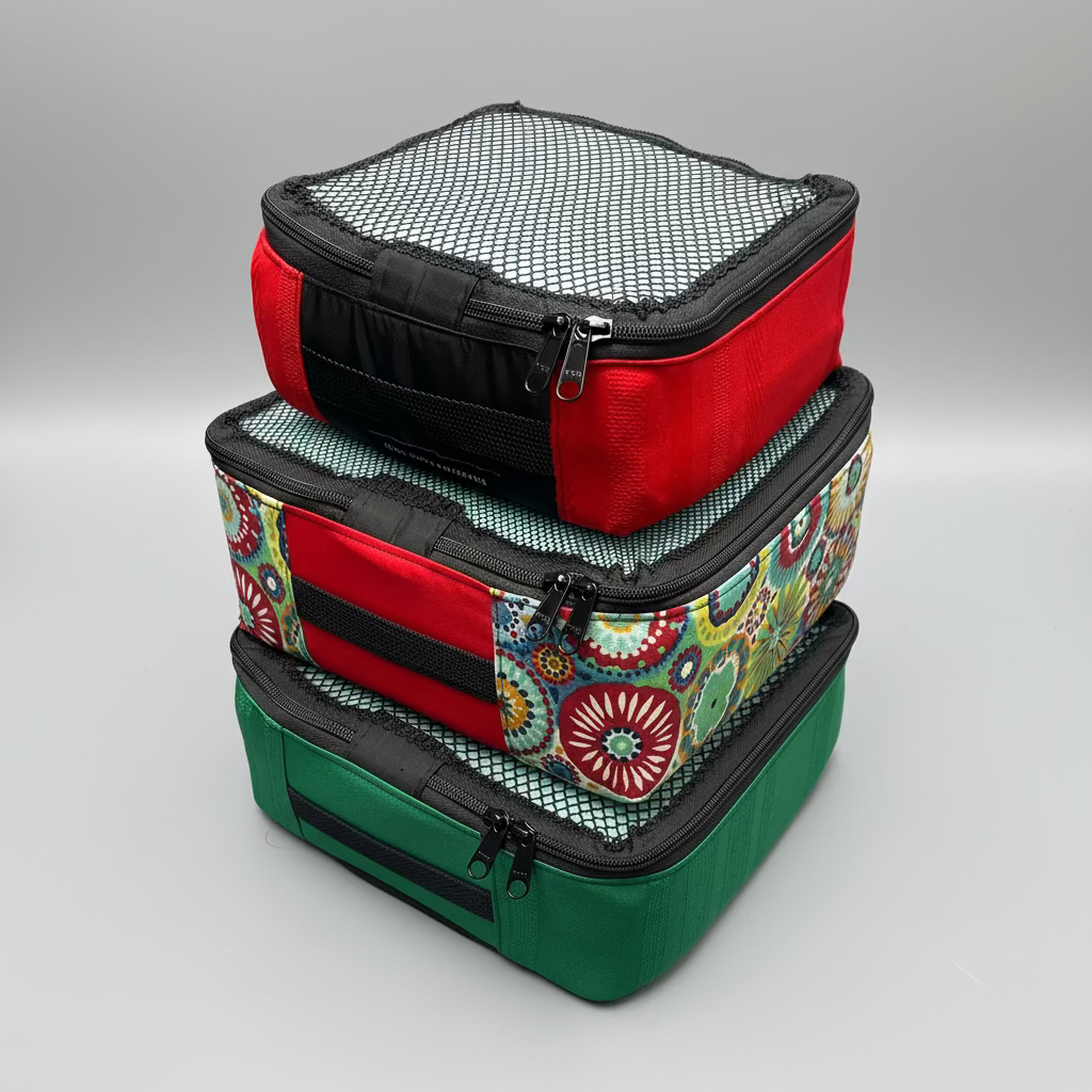 Our introductory kit is a collection of packing cubes; designed for intermediate sewists, they are colorful mesh and fabric zipped cubes that will make packing for your next trip easier and more convenient. Mix and match colors for a fun sewing project!